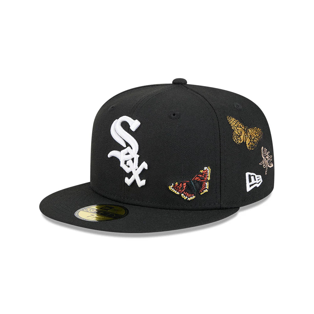 Esta gorra plana New Era 59FIFTY de Chicago White Sox de la colección Felt X MLB presenta un diseño inspirado en la naturaleza con el logotipo de los White Sox bordado en los paneles frontales, mariposas bordadas en toda la corona, el nombre de Felt al reverso y el flag de New Era bordado del lado izquierdo.