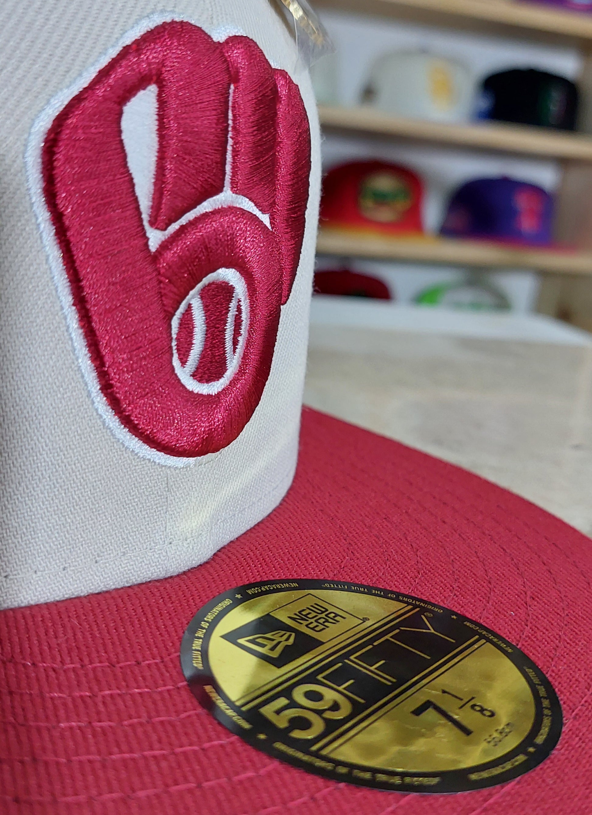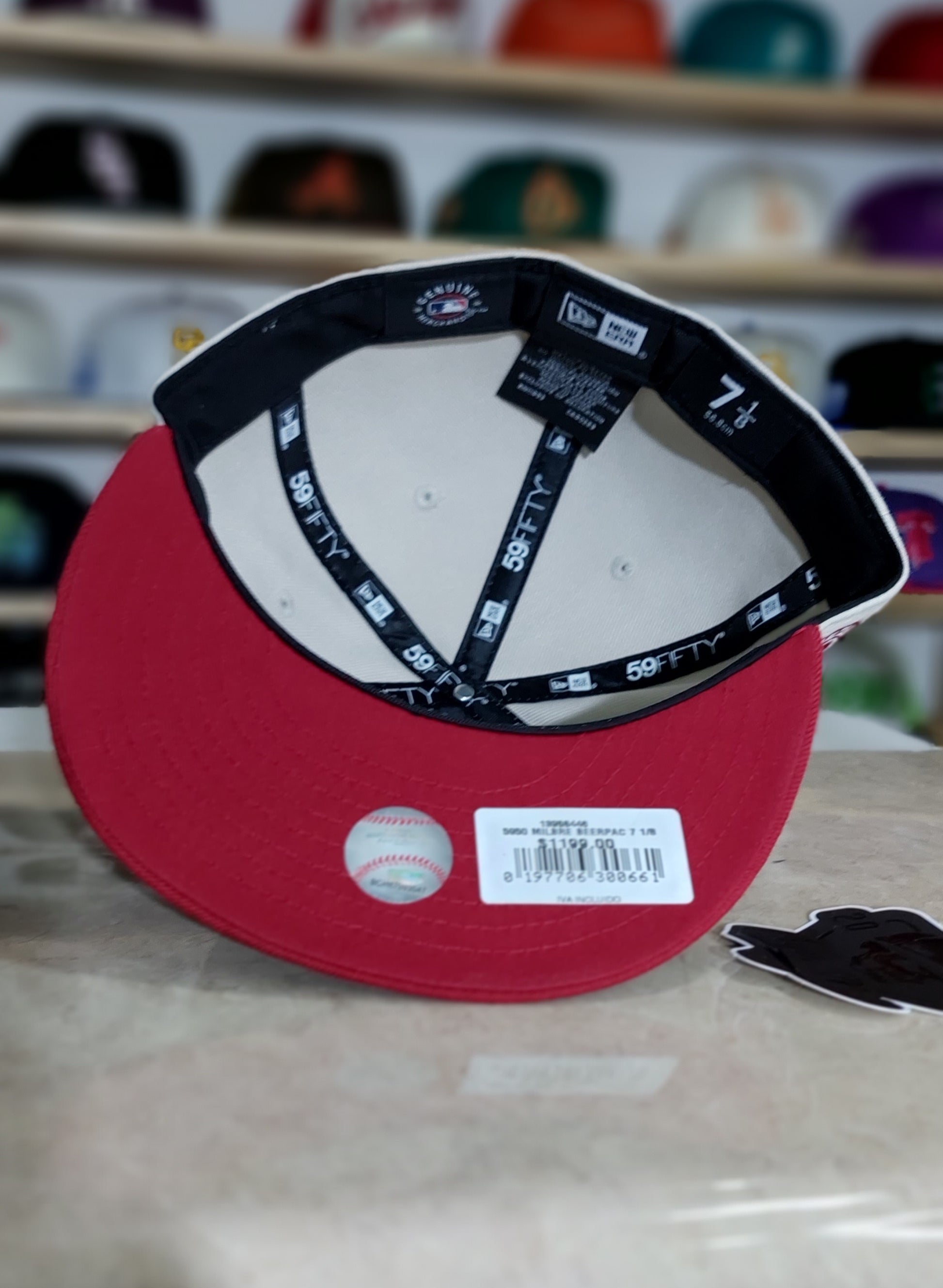 Esta gorra New Era 59FIFTY de Milwaukee Brewers de la colección Beer Pack tiene un pin especial de una corcholata, el logotipo de los Brewers bordado al frente, un diseño en dos tonos con la corona blanca y la visera roja, un parche conmemorativo y el flag de New Era bordado en el lado izquierdo.