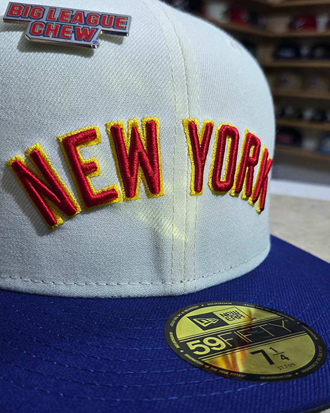 Big League Chew es sinónimo de béisbol. Esta gorra ajustada 59FIFTY original de New York Yankees Big League Chew de New Era combina el juego favorito de Estados Unidos con el chicle favorito del juego. El pin Big League Chew en la corona hace que esta gorra sea única y elegante para combinar con tu estilo del día del juego.